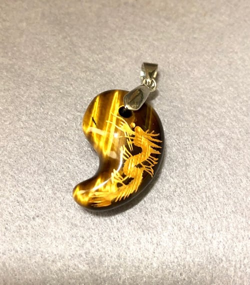 タイガーアイ 勾玉 ペンダント 龍彫り 金彫り 天然石 パワーストーン 虎目石 まが玉ネックレス お守り
