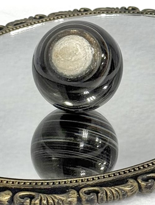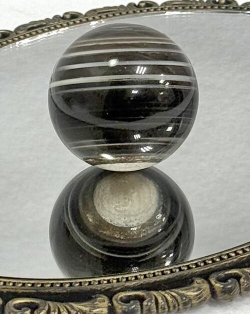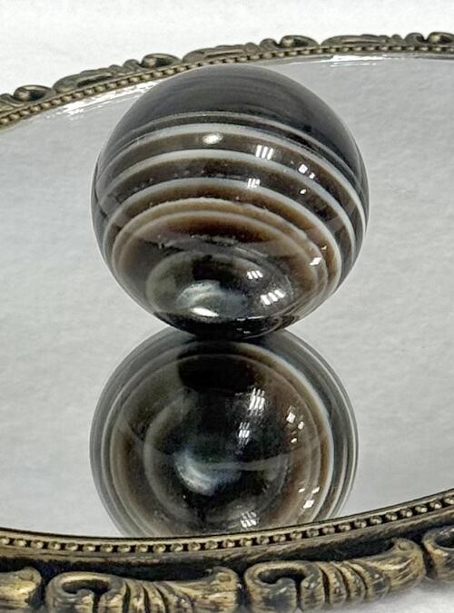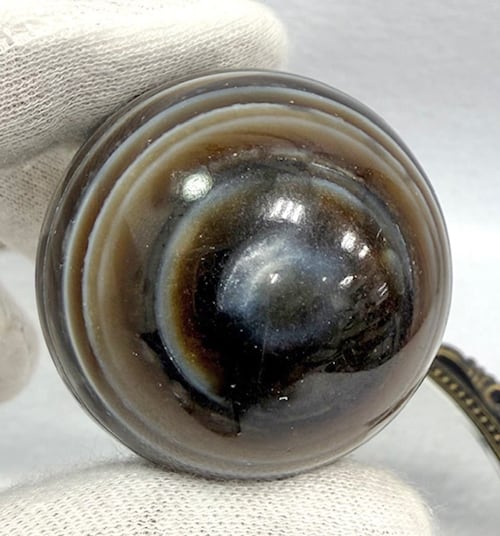 縞模様の顕著な瑪瑙を目玉模様に見えるように仕立てた天眼石