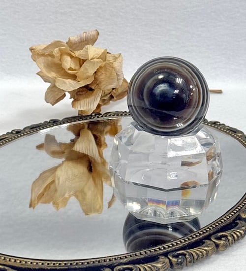天眼石は本物の目玉のような模様が特徴で瑪瑙の縞模様を生かした石です。