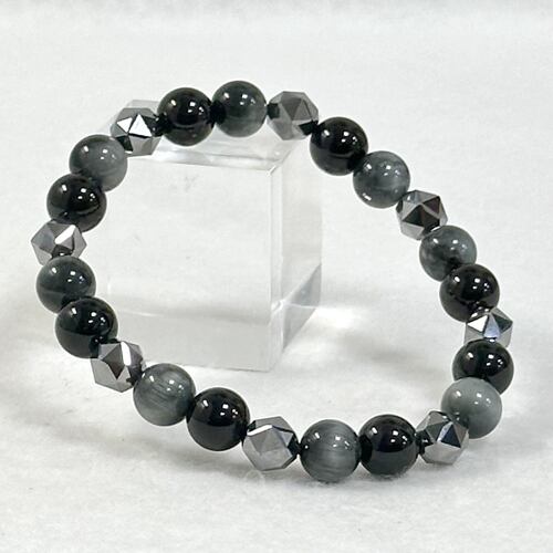グレーが渋いイーグルアイを使用したブレスレットです。