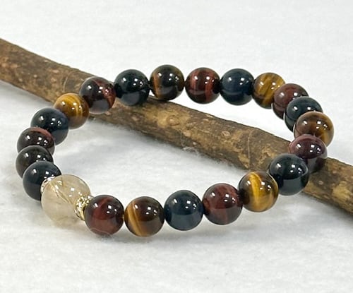 ミックスタイガーアイに金運で人気のルチルクォーツをデザインしたブレスレット
