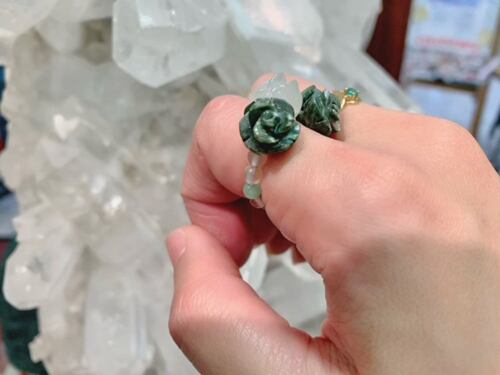セラフィナイト ニュージェード バラ リング 天然石 ビーズリング パワーストーン 薔薇 彫刻 指輪 約6〜12号 フリーサイズ