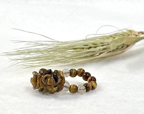 タイガーアイ バラ リング 天然石 ビーズリング パワーストーン 薔薇 彫刻 指輪 約7〜12号 フリーサイズ