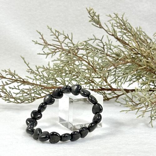 <商品詳細> ◆商品コード PBR-501 ◆商品名 シュンガイト ハート型 ブレスレット ◆アイテム ブレスレット ◆価格 ¥4,950- ◆サイズ 約10×10ミリ ハート型 16個 内寸約16.0cm ◆備考 ロシア カレリア共和国産 *炭素鉱物のため使用時に肌・衣類等にススのようなものが付着することがあります。 白い服などとの併用等、ご使用の際は衣類等ご注意の上ご使用くださいませ。