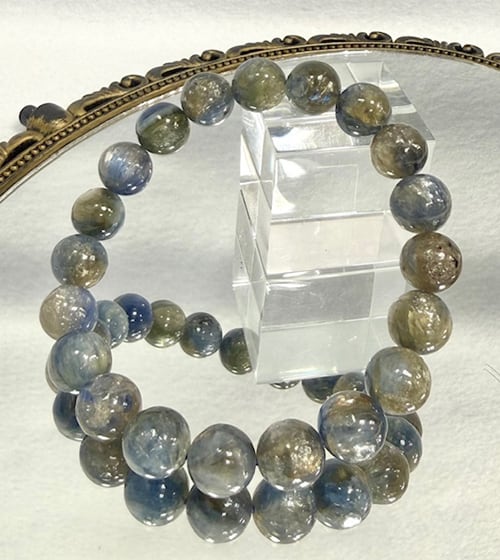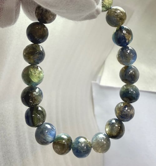 【 商品詳細 】◆商品コード PBR-504 ◆商品名 カイヤナイトマイカクォーツ ◆アイテム ブレスレット ◆サイズ 約10〜10.5ミリ×20 約16.5cm <備考>タンザニア産