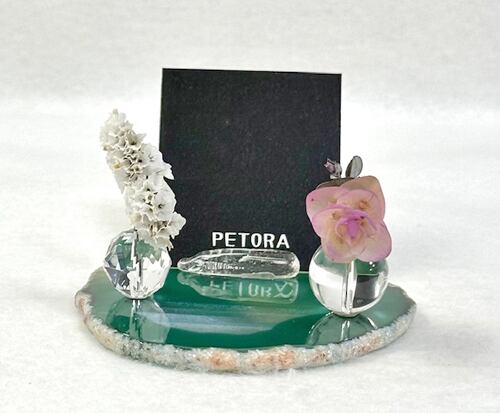 *カードや写真を立てるスペースにそれ以上の厚みで入れ込まないようご注意くださいませ。【 商品詳細 】◆商品コード PIH-217 ◆商品名 石 to HANA カードスタンドタイプ ◆アイテム 石 to HANA 水晶 瑪瑙 ◆価格 ¥3,025- ◆サイズ 透明クリスタルボックス 80×110×60ミリ ◆備考 * お付けしているドライフラワーはやがて色あせてしまいますが、お好みの花を入れたり天然石ベースをお楽しみくださいませ。*お客様のお手元へお届けの際は天然石ベースにお付けしていますドライフラワーは損傷防止のため分けてお包みしております。 開封後、お付けしていますドライフラワーやお好みのお花などを天然石ベースに挿して独自の自然のアートをお楽しみくださいませ。*お付けしていますドライフラワーは販売品ではございません。*天然石ベースにはお水などは注がないように願います。