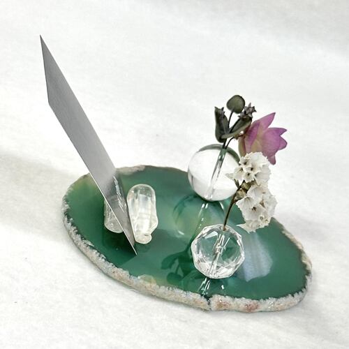 天然石 花 ドライフラワー カードスタンド フォトスタンド 名刺立て 写真立て パワーストーン 水晶 瑪瑙 アゲート スライス 石toHANA インテリア スターチス