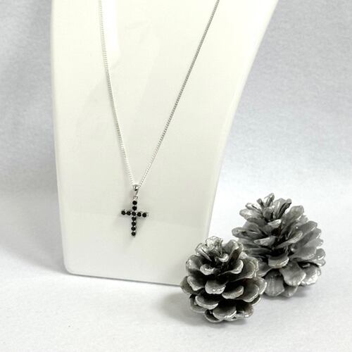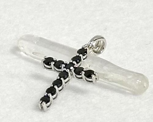 ブラックスピネル ペンダントトップ 天然石 パワーストーン クロス デザイン ブラック スピネル シルバー ペンダント ネックレス