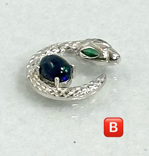 【 商品詳細 】◆商品コード PPT-269 ◆商品名 オパール へびモチーフ ペンダントトップ ◆アイテム シルバーペンダントトップ ◆価格 ¥9,550- ◆サイズ 約7x5mm ・チェーン材質:SV925 / チェーン長さ スライド式 最長約45センチまで調整可能 ◆備考 エチオピア産 *金具 SV925 *A,B共に画像内のシルバーチェーン(サイズ調整可能タイプ)が付属いたします。