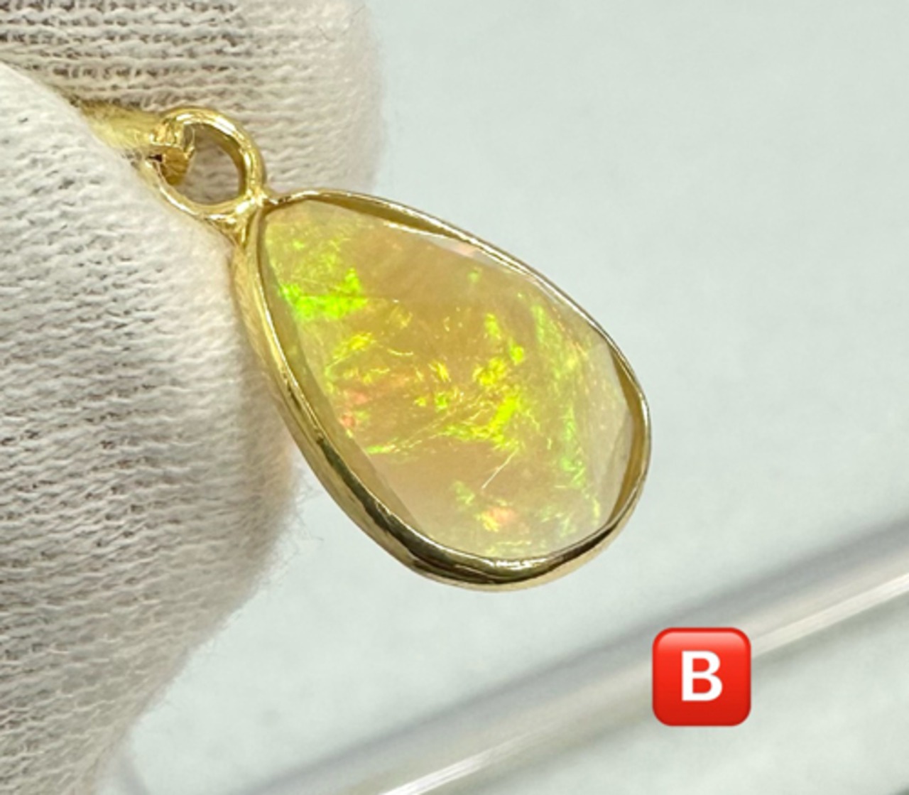 商品詳細 ◆商品コード PPT-272 ◆商品名 エチオピア産オパール ◆アイテム ペンダントトップ ◆価格 ¥9,900- ◆サイズ ホワイト系 A ラウンドファセットカット 全長 約15.4mm(バチカン部分含む) SILVER925製・ロジウム仕上げ / イエロー系 B フリーフォーム ローズカット 全長 約25.5mm(バチカン部分含む) SILVER925製・18KGP仕上げ ◆備考 エチオピア産